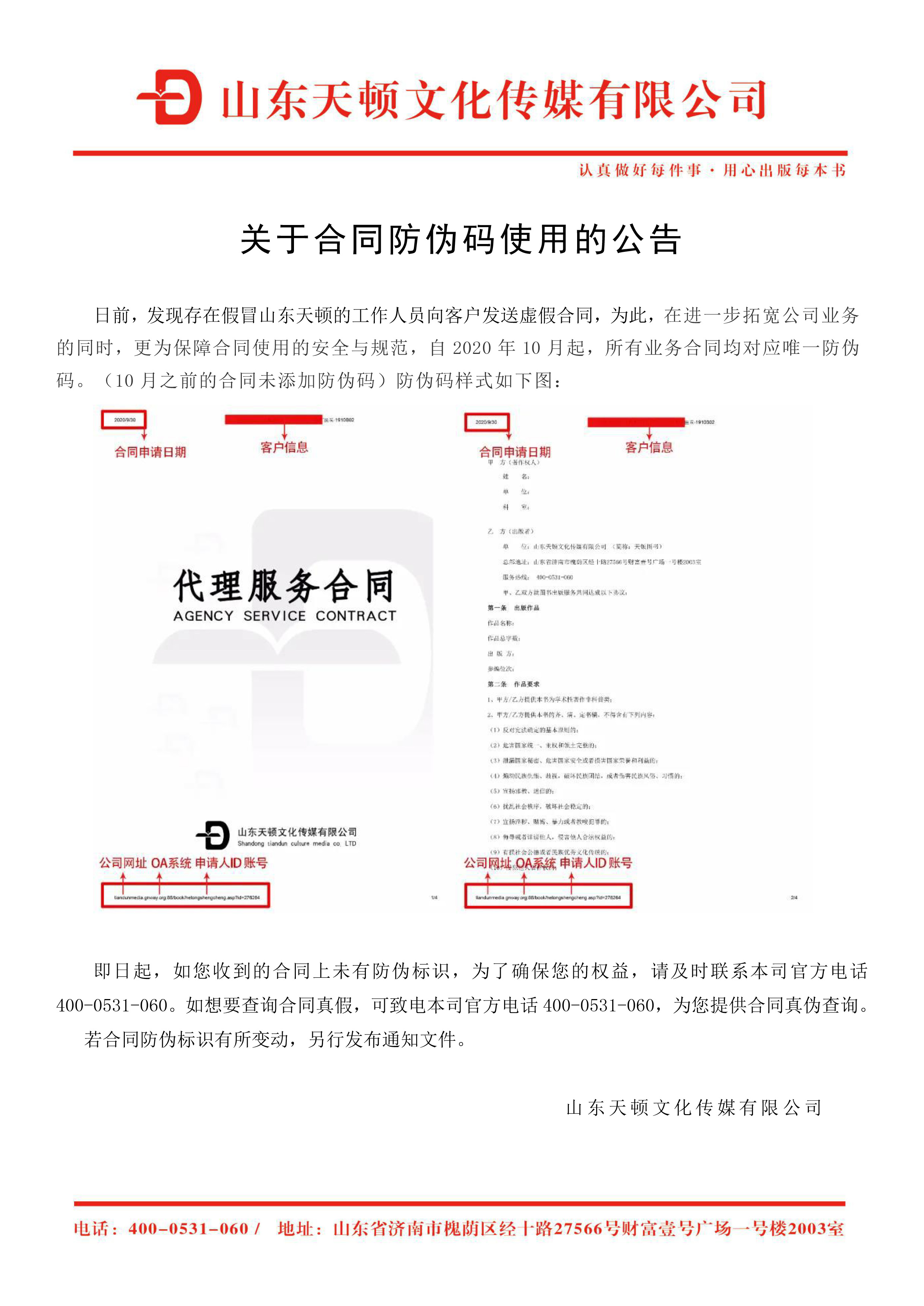 关于合同防伪码使用的公告
