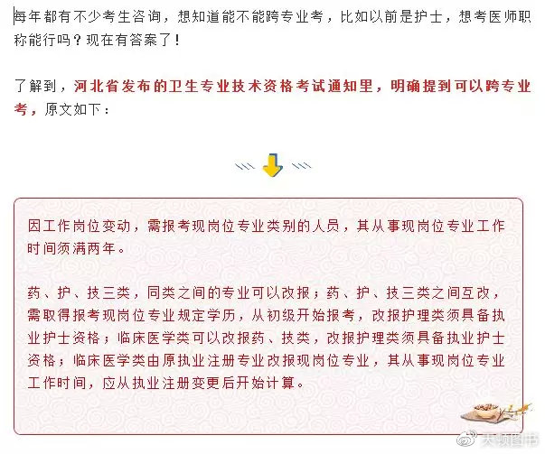 在中国卫生人才网公布的卫生资格考试政策里也提到类似的表述:因工作岗位变动,需报考现岗位专业类别的人员,其从事现岗位专业工作时间须满两年。