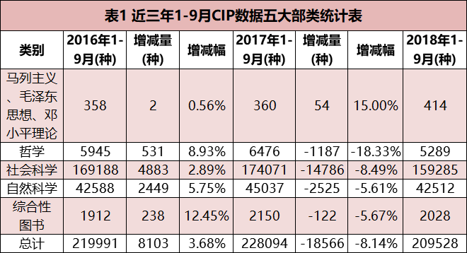 从今年前三季度的图书选题申报的变化情况可以看出:自然科学选题下降明显,医药卫生类选题占比不到两成!(见表1)根据中国版本图书馆最新数据显示,近三年1-9月医药卫生类选题占自然科学选题二成多,分别为:27.01%、27.36%、27.59%,呈逐渐增多趋势。从选题数量来看,近三年1-9月选题数量分别为:11502种、12322种、11729种。2017年1-9月涨幅为7.13%,比2016年同期增加800余种;然而2018年1-9月降幅为4.81%,比2017同期减少500余种。其余各类选题数量均在万种以下,共占比三成多,工业技术类选题占比四成多,医学卫生类选题竟不到自然科学类选题的两成!