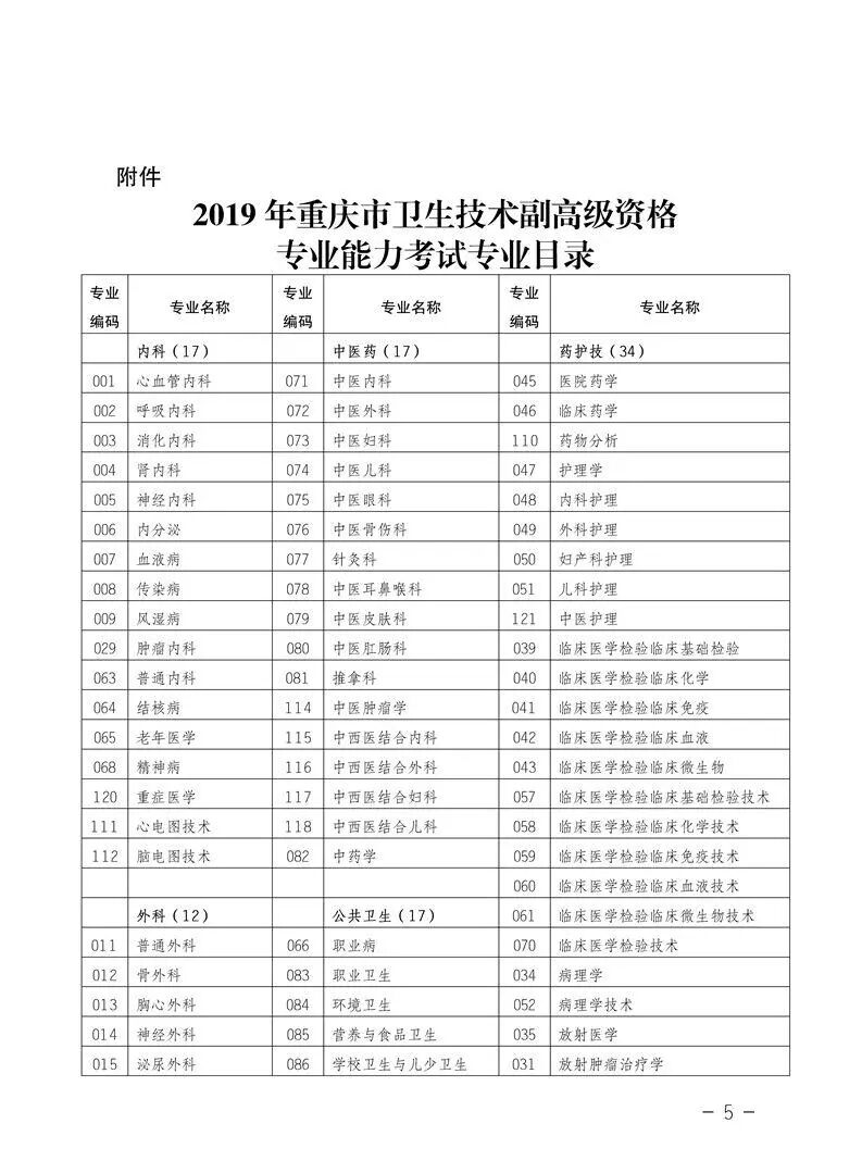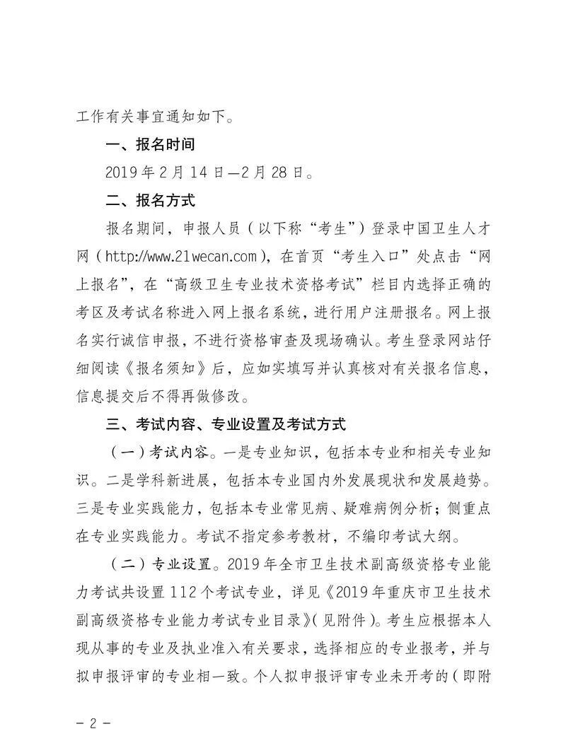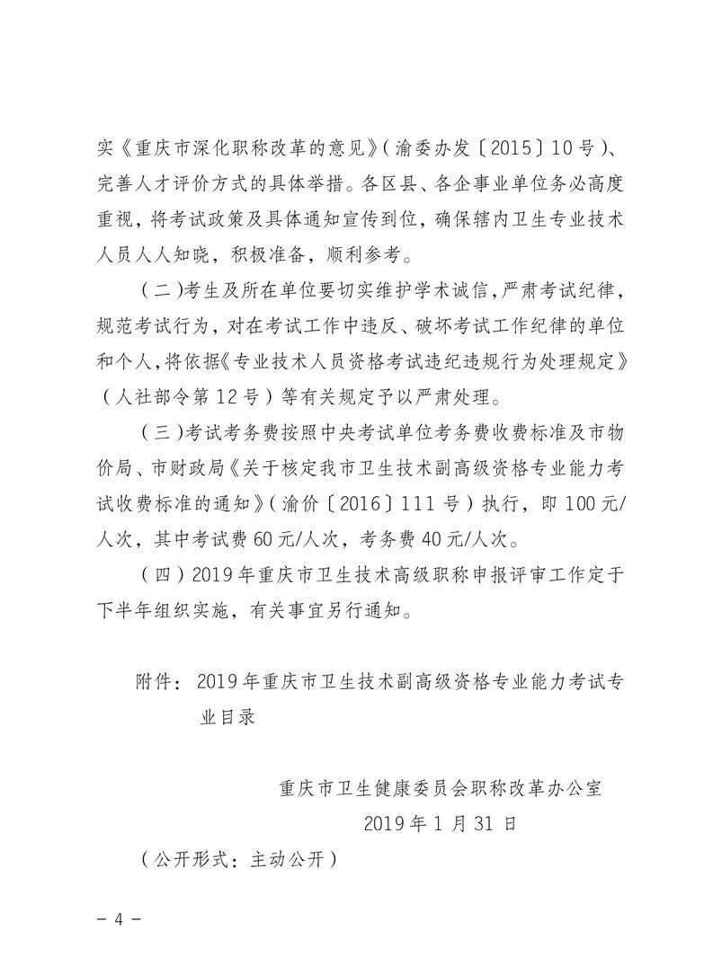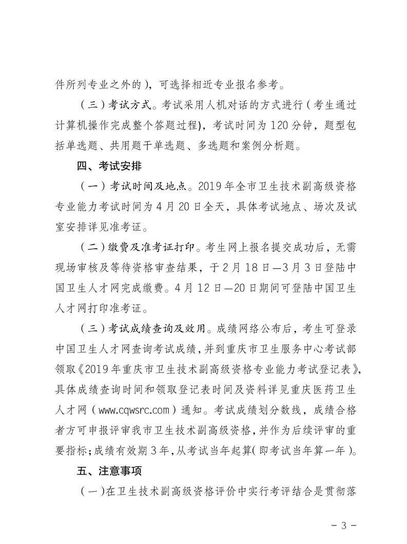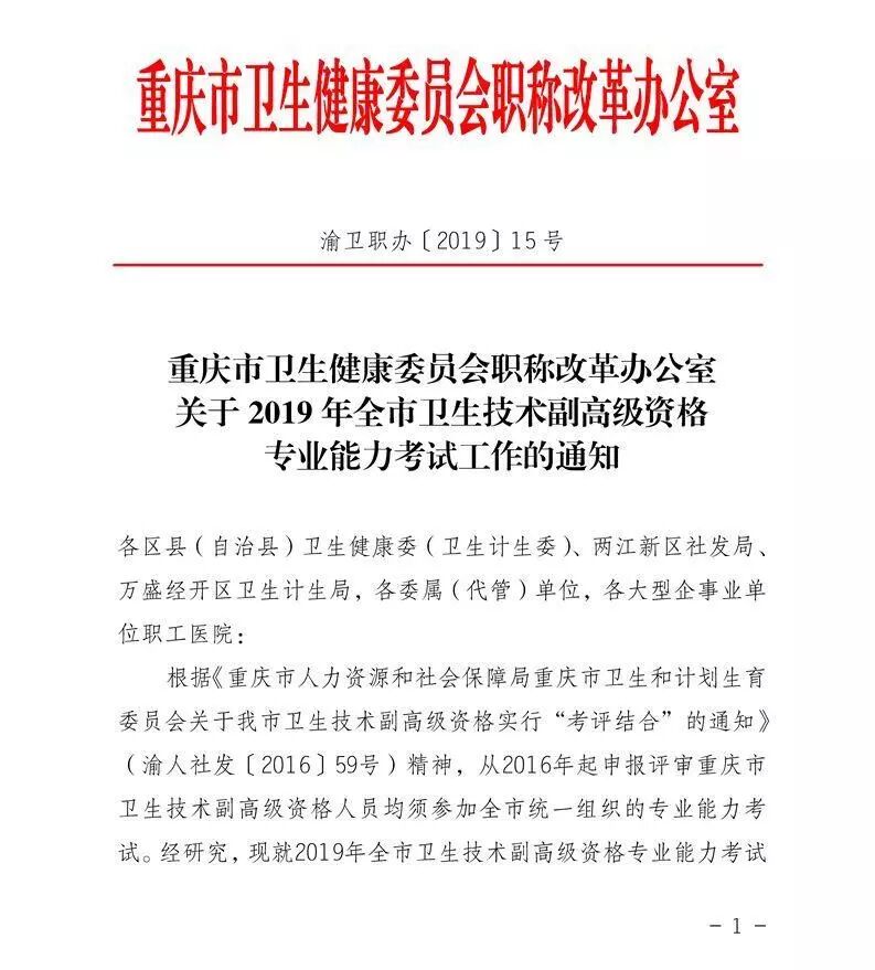 重庆市2019年卫生技术副高级资格专业能力考试工作的通知